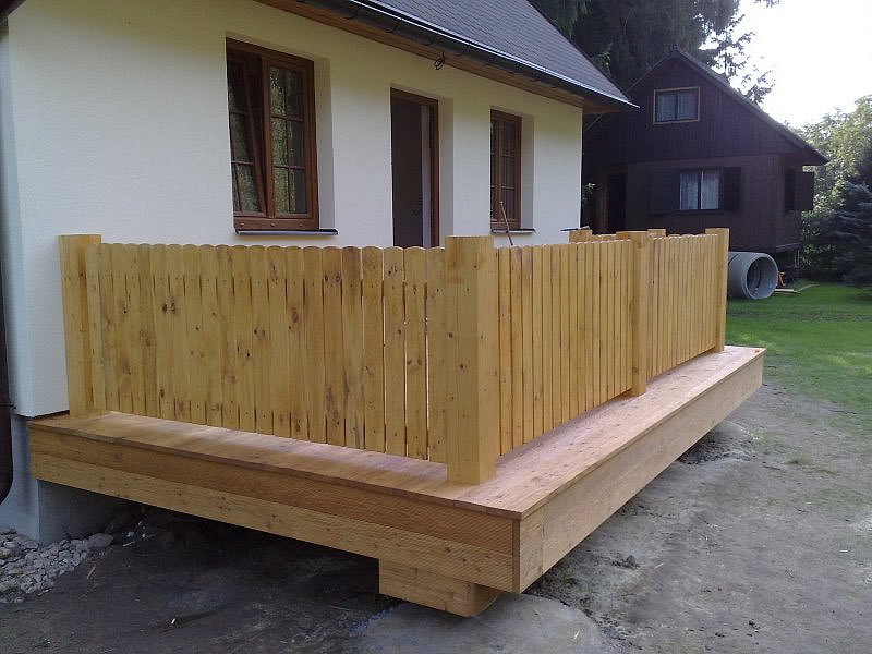 Terasa a plotové dílce natřené olejem na terasová prkna Pflege-ol od fa. Remmers.